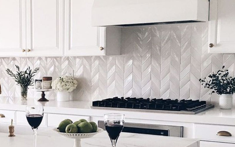 Photo: Encore Ceramics, Chevron Dimensional Mosaic with Milk Gloss Glaze